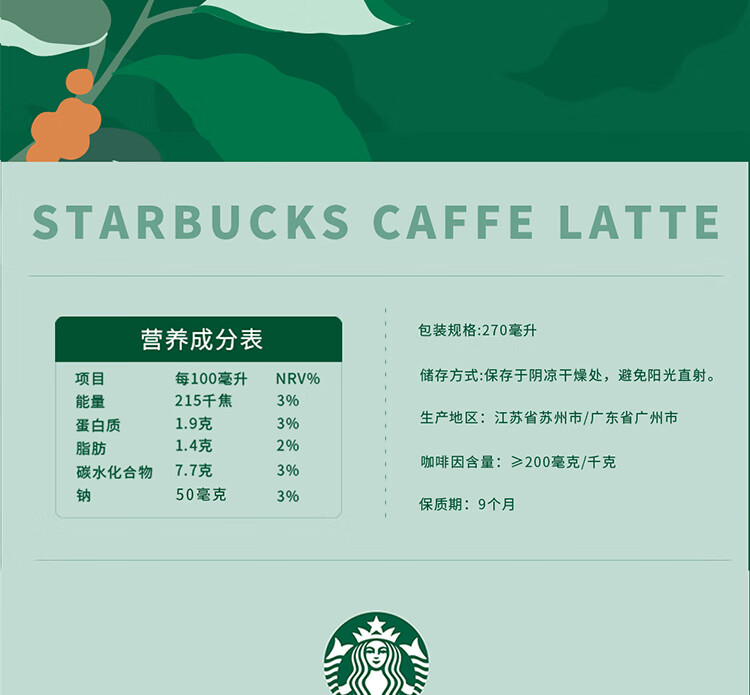 星巴克星选咖啡饮料(芝士奶香味)270ml*15瓶/箱