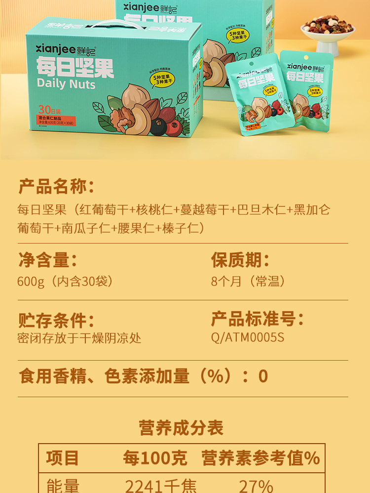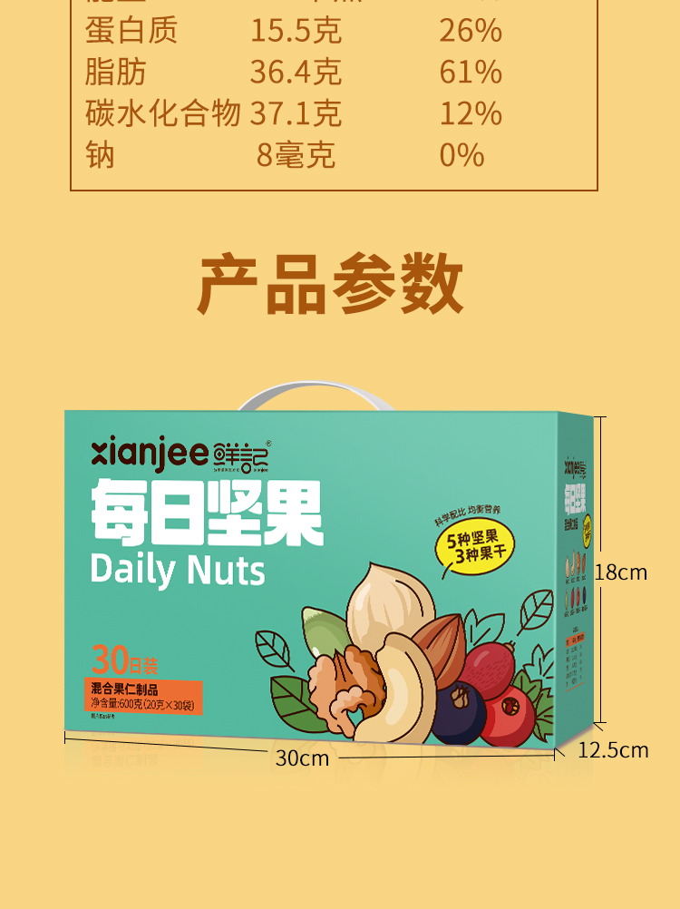 鲜记 每日坚果600g/盒