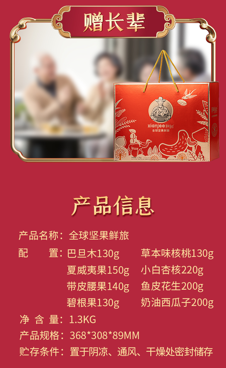 鲜记 全球坚果鲜旅礼盒1.3kg