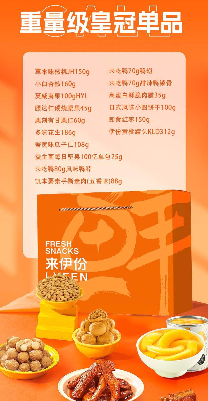 来伊份新鲜零食礼盒春节坚果礼兴隆268款16件1739g